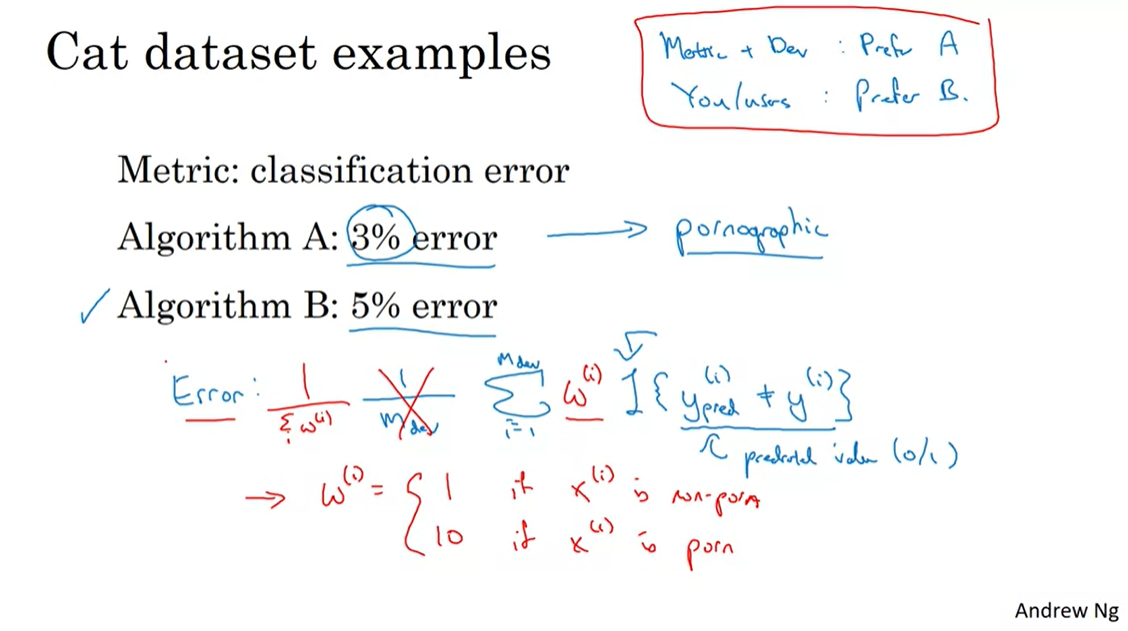 위와 같이 x가 porn 이면 w라는 가중치를 두는 방법을 통해 metric을 재설정하면 기존과는 다르게 B 알고리즘을 더 좋은 모델로 평가할 수 있다.
