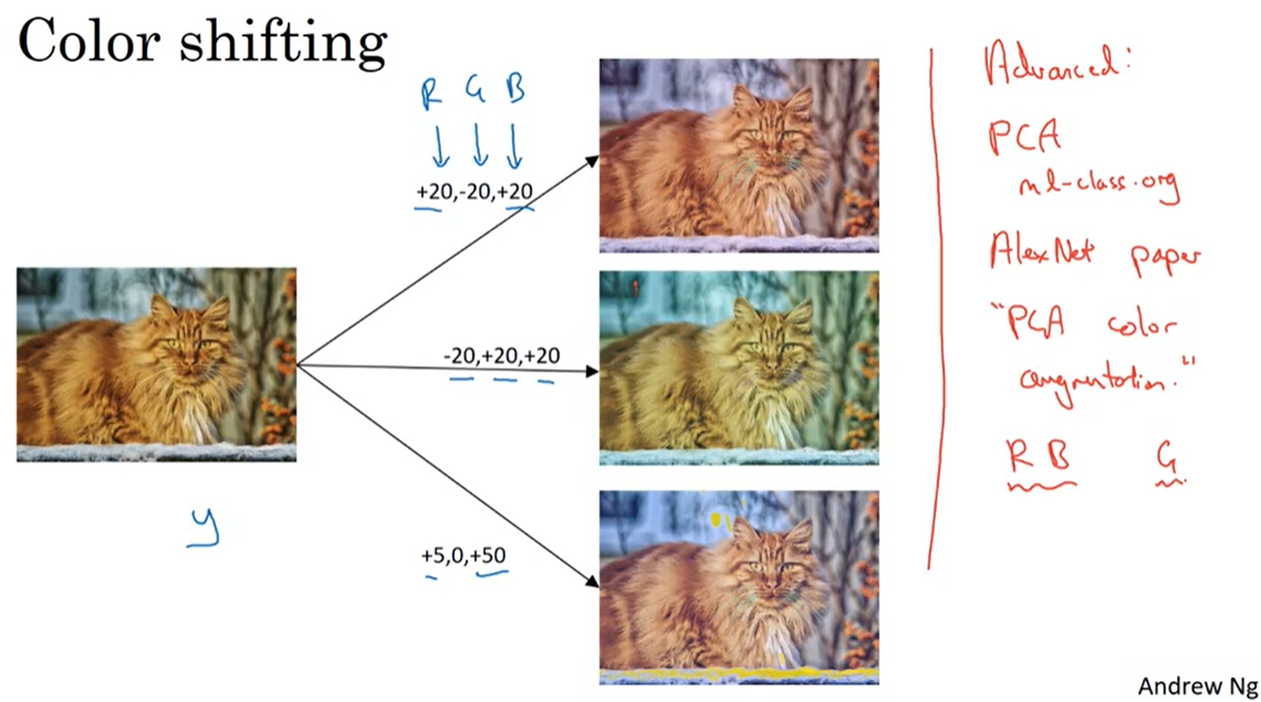 - Color Shifting : 이미지는 3개의 채널로 이루어져 있는데, 각각의 채널에 가중치를 달리하여 색조를 다르게 한다.