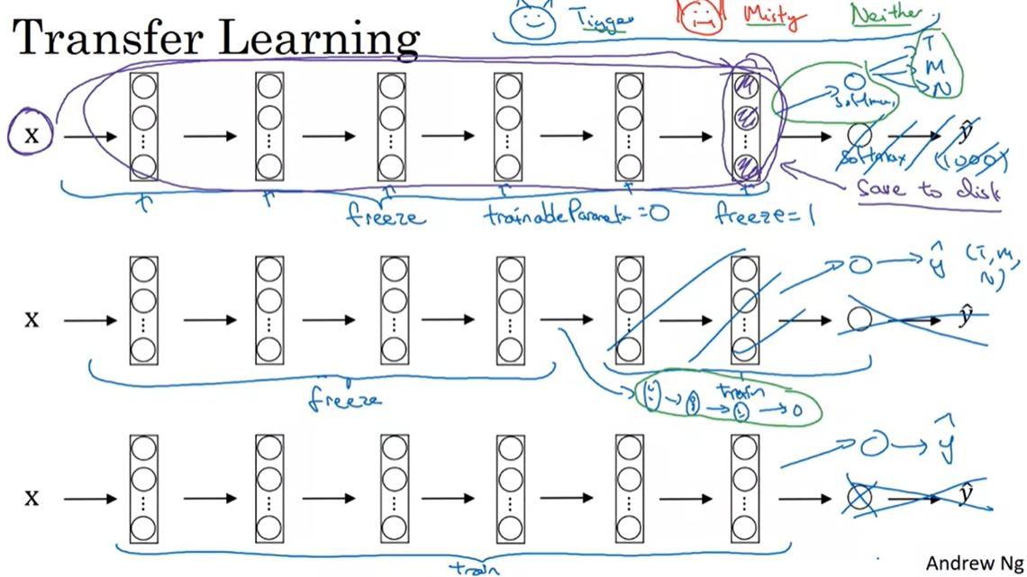 - 코드와 W를 다운받았다면 freeze 한 layer의 마지막까지 activation값을 구해준다. 그러고 나서 그 다음부터는 freeze 되어 있지 않으니 gradient descent로 W를 update 시켜준다(그 전까지의 W는 고정).