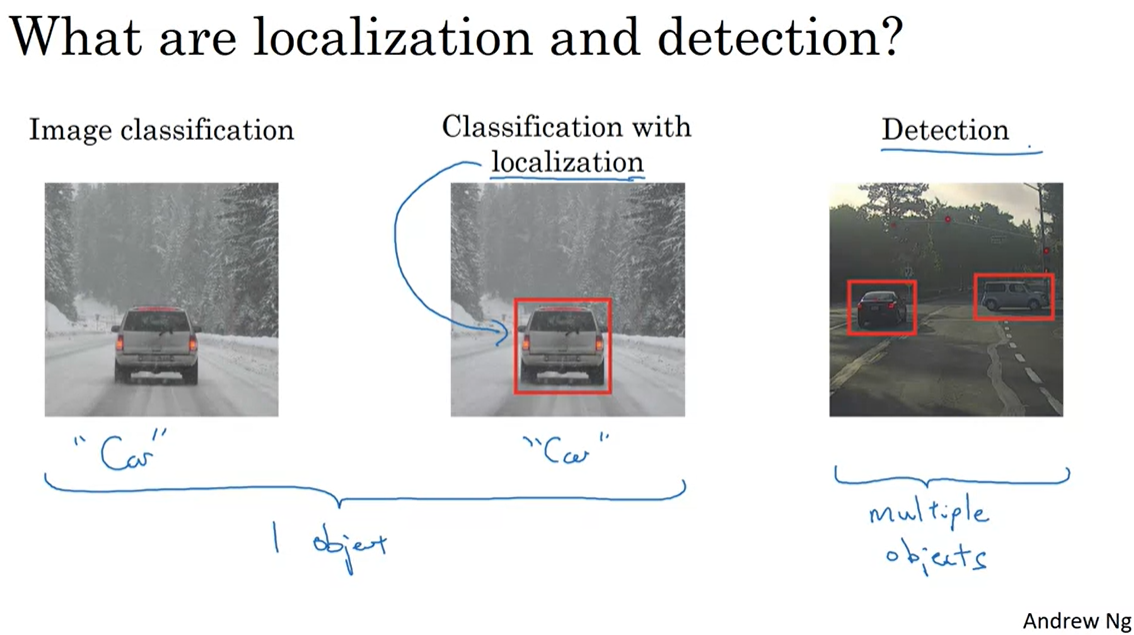 - Classification with localization : 해당 사진의 물체가 무엇이며 그 위치는 무엇인가?