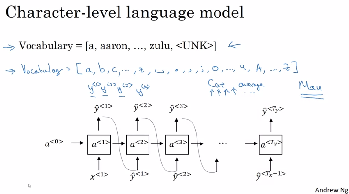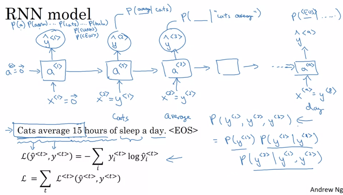 cf) y_hat<1> =( p(a), p(aa), ......, p(cats), ..., p(zelu) ) 와 같은 벡터의 형태일 것. 10000 + 2(Unk, Eos) 개의 소프트맥스가 될 것.
