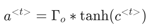 GRU에서는 1-감마u 로 update gate와 forget gate를 표현했으나 LSTM은 아예 다른 gate로 정의한다. 거기다가 output gate를 만들어서 최종적으로 a<t>를 산출할 때, 감마o를 사용한다.
