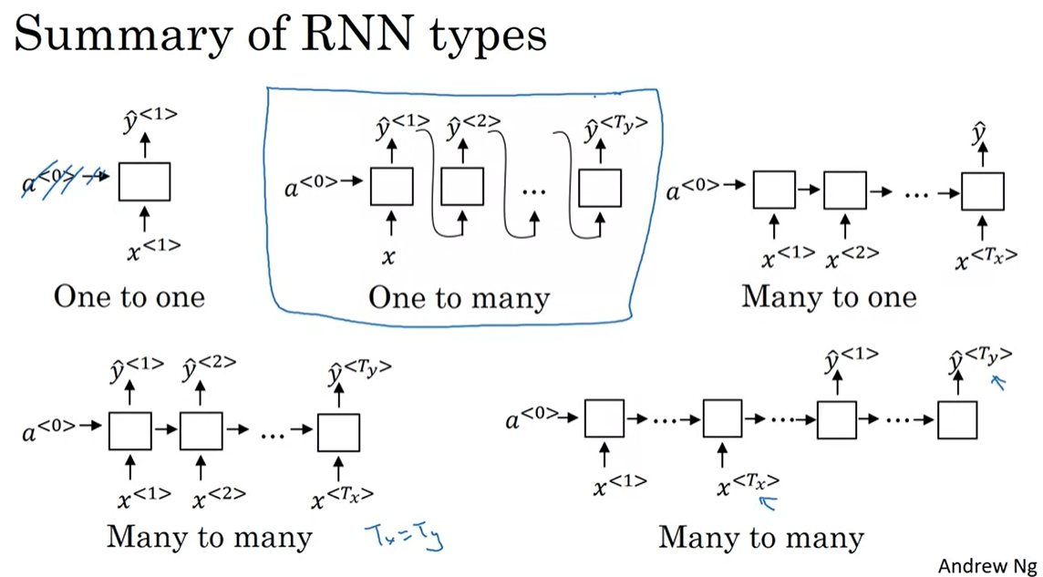 - many to many(tx ? ty) : 불어-> 영어 번역. 단어 수가 꼭 같을 수는 없겠지?