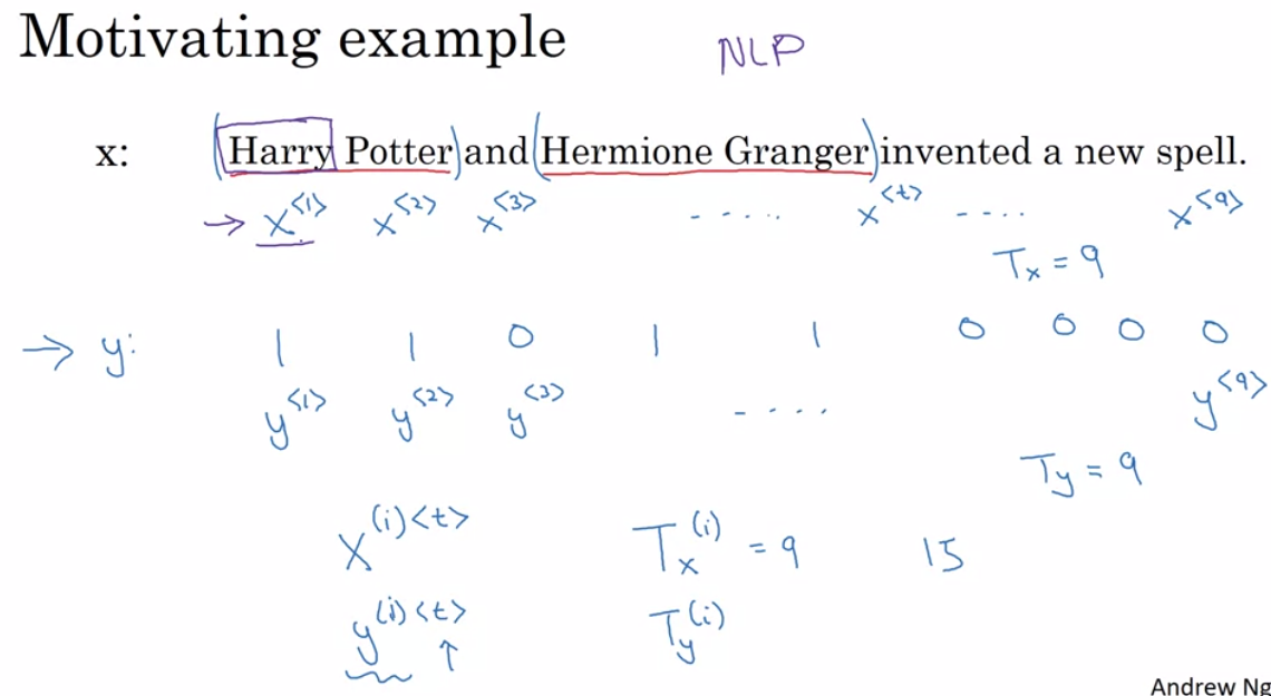 1) 일단 매 문장마다 문장 길이가 다르므로 x<Tx>와 y<Ty>가 달라진다.