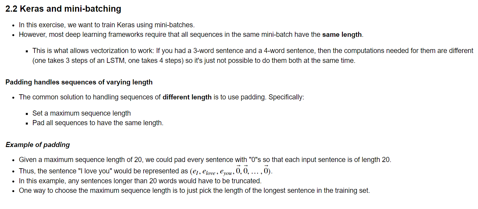 RNN의 특성상 시퀀스 데이터의 길이가 훈련데이터마다 달라지면 array 처리가 힘들다. 대부분의 딥러닝 프레임워크가 같은 길이의 시퀀스를 요구하는 이유다.