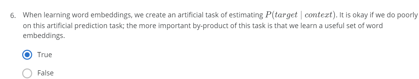 1. 우리가 word2vec(혹은 GloVe 등등) 를 하는 궁극적인 목표는 context word가 인풋되었을 때, 어떤 단어가 target인가 아는 것도 중요하지만 더 중요한건 word embedding matrix를 학습하는 것이다.