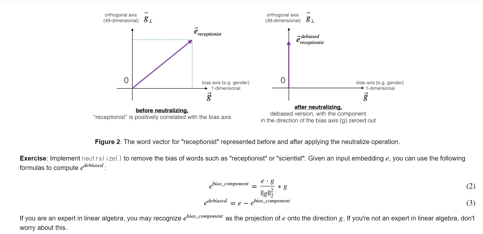 e_bias 는 e를 gender 축으로 정사영한 벡터로서 (스칼라값) x (gender 축 방향 단위벡터) 이다.