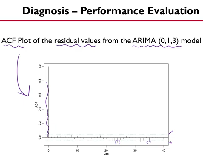 - 40 lag 까지의 그래프에서 bound(표준편차 x3 범위)를 2~3개 정도만 넘어가면 오케이.