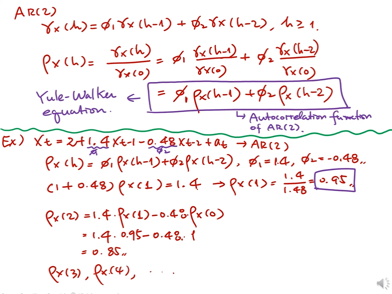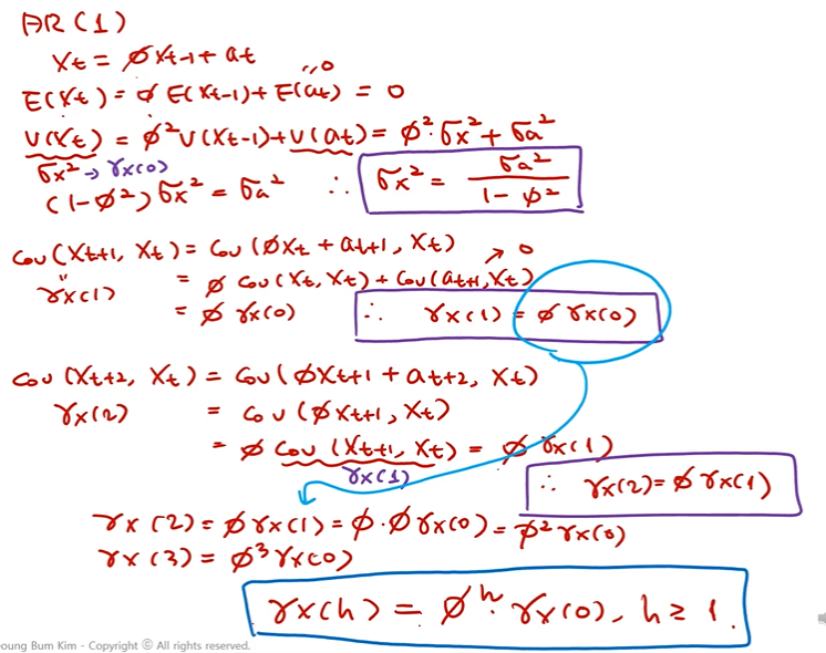 - 저렇게 쉽게 등식이 성립하는데 이걸 Yule-Walker equation이라고 한다.