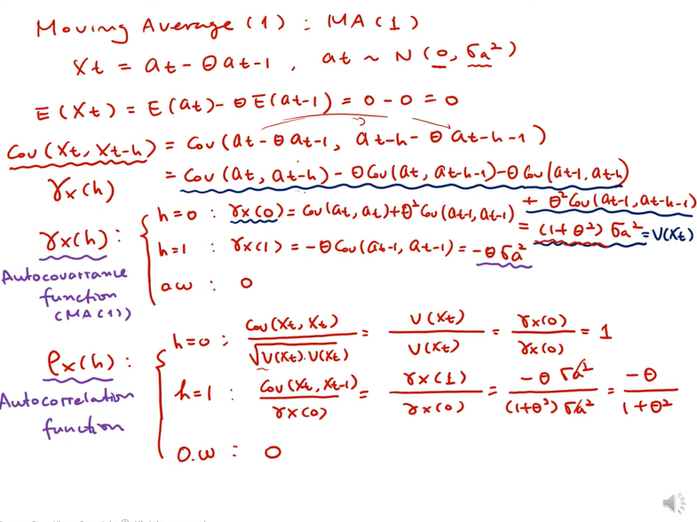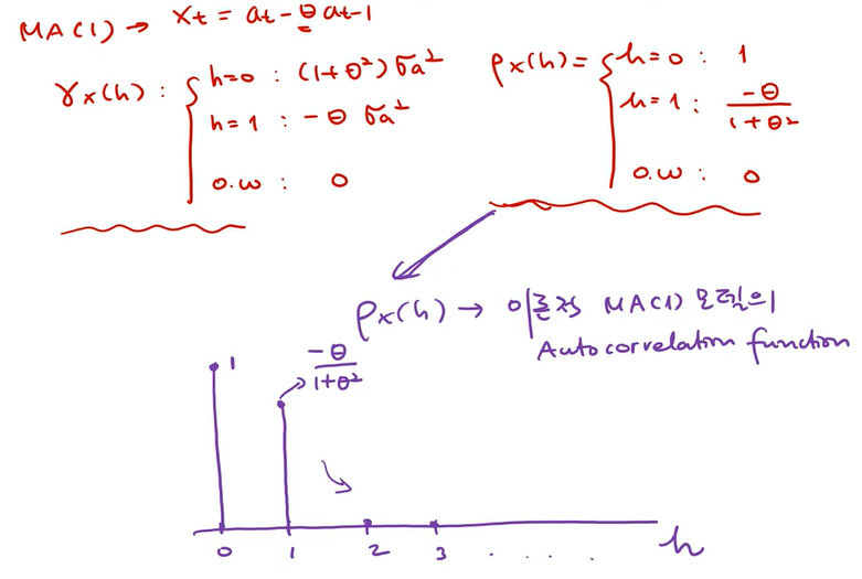 - MA 모델은 Xt 를 이전 오차들로 표현하는 방식