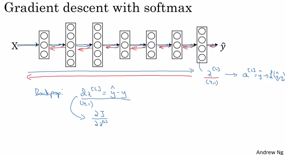 sigmoid와 마찬가지로 soft max를 활용하는 multi classification의 경우에도 Loss 함수를 구하고 이를 통해 Back propagation을 해야한다.